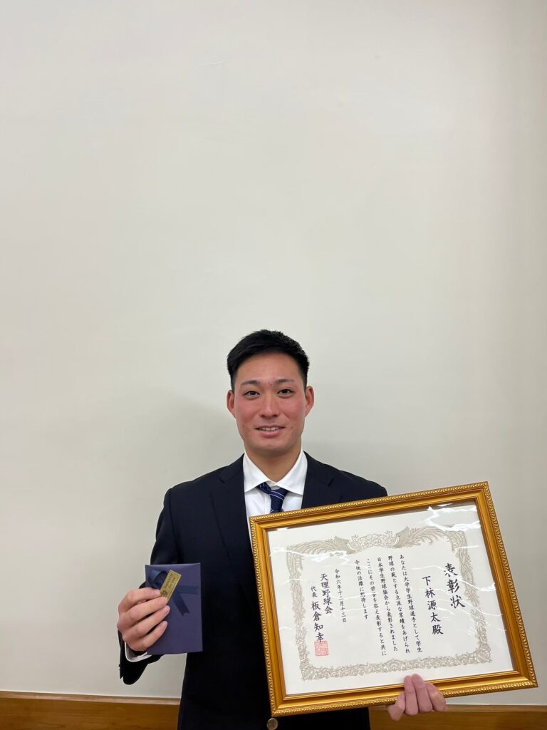 総会途中では、今季ドラフト会議において楽天イーグルスへ入団が決まった江原雅裕選手(天理高-國學院大-日鉄ステンレス)より、天理野球会の選手へ送られたビデオメッセージを放映し、選手たちへ夢を与えてくれました。